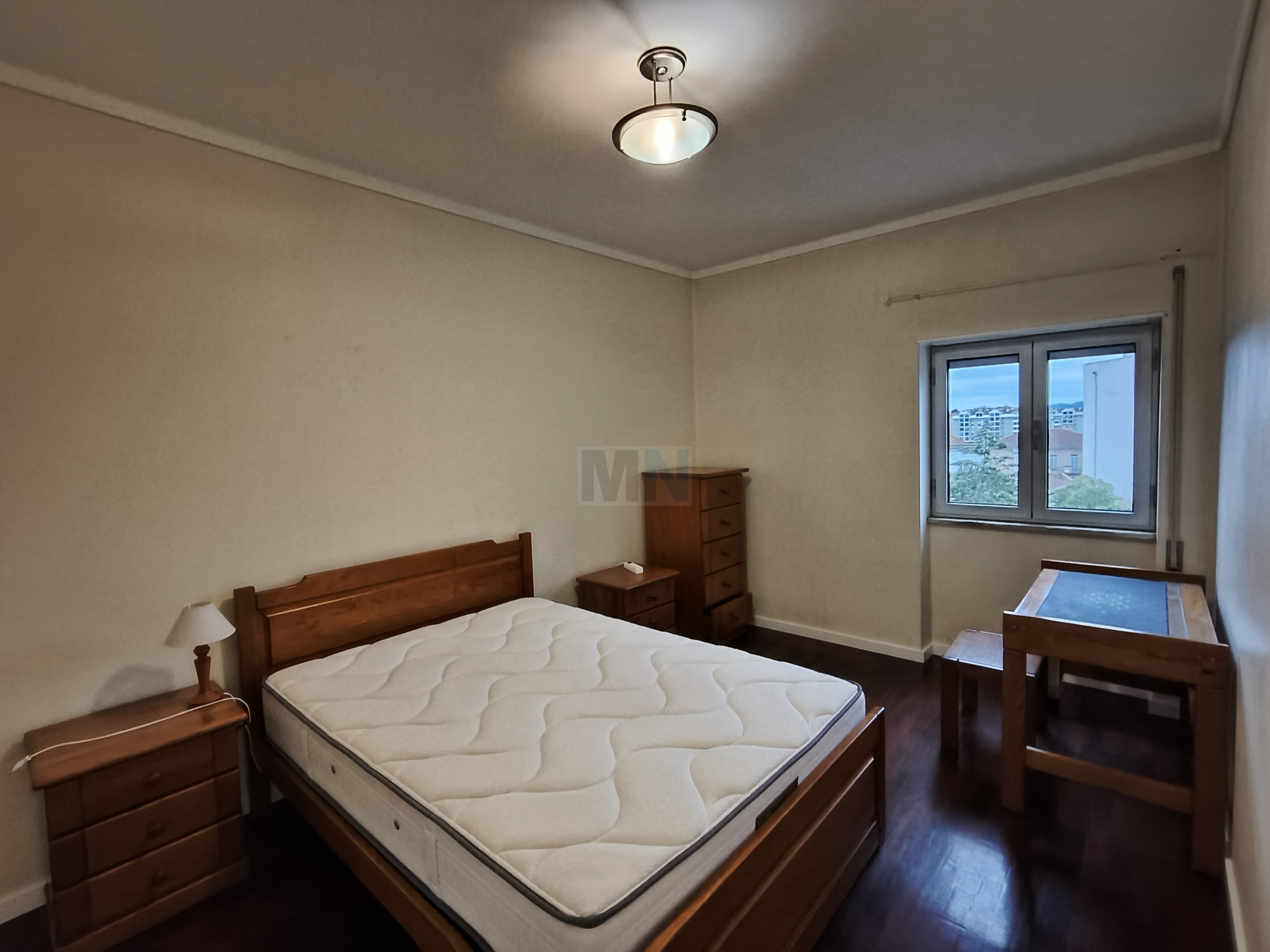 O apartamento é composto por dois quartos com roupeiro, 1 pequeno escritório, cozinha equipada com despensa, duas varandas.